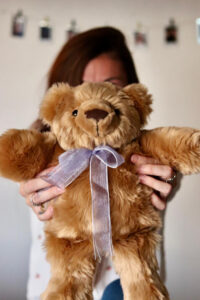 I got my Comfort Cub almost 8 years ago, after the lowest and worst point in my life. My bear was a huge comfort in my darkest days. Now he is an important member of our family. When I got him, this is what runs through my mind, “When was the last time you felt him move?” – that was the moment “BeforeHolly,” before I died too. It’s been many years… and I still remember what I was wearing, what the room looked like… and the kindness of the doctor sent in to confirm what I was afraid of.